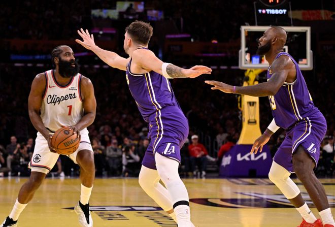 直白点说,当这一阶段夫(里夫斯)妻(东契奇)组合疯狂爆发时,詹姆斯更像是局外人。更尴尬的是,很多洛杉矶媒体当时认为,詹姆斯回归后,会导致球队防守下滑,破坏原有平衡体系。最终詹姆斯不得不亲自解释,自己可以适应并融入任何阵容。第二阶段,就是詹姆斯复出后,他出战的7场比赛,湖人6胜1负。连续两场击败爵士像是在试水,紧跟着对阵快船一战,詹姆斯32分钟轰下25分6篮板6助攻,承担起球队衔接段串联重任。这期间打猛龙,让詹姆斯连续得分上双纪录中断,但那场比赛,詹姆斯给八村塁送出三分绝杀。