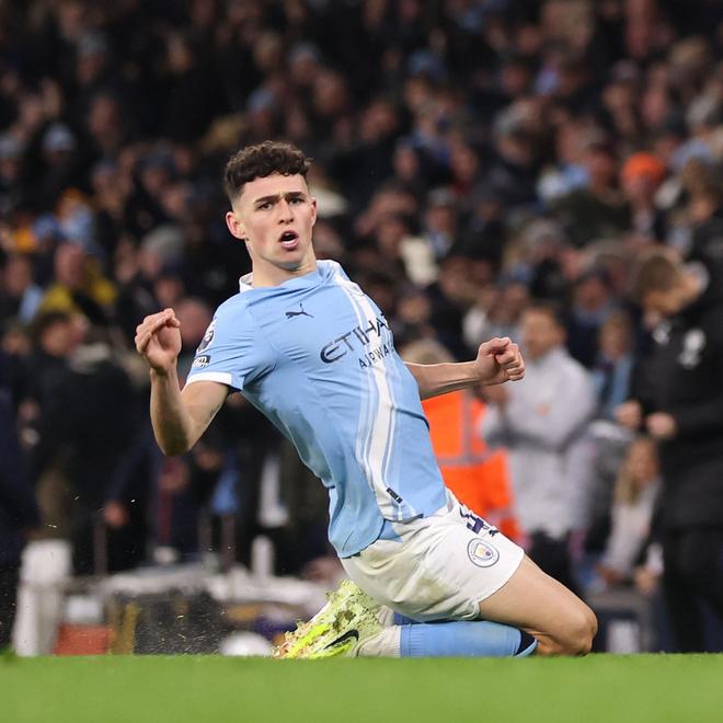 福登曼城生涯已打进109球,超越德布劳内位居队史射手榜第16